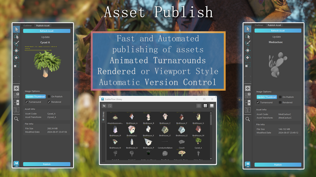 • Animated turnaround thumbnail rendering (via Viewport or Arnold rendered)